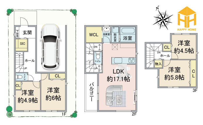 尼崎市大庄中通1丁目新築一戸建て【全3区画】で募集中の物件