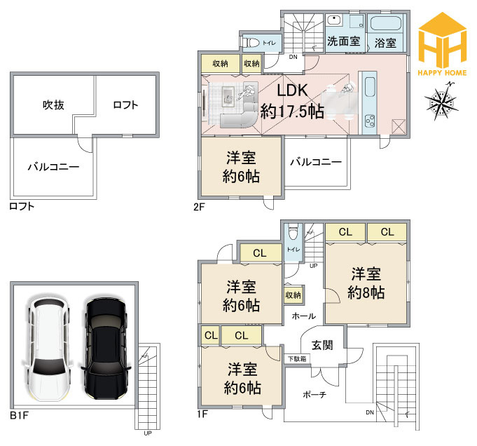 - 西宮市苦楽園四番町中古戸建│4LDK+並列駐車2台可(堀込車庫)