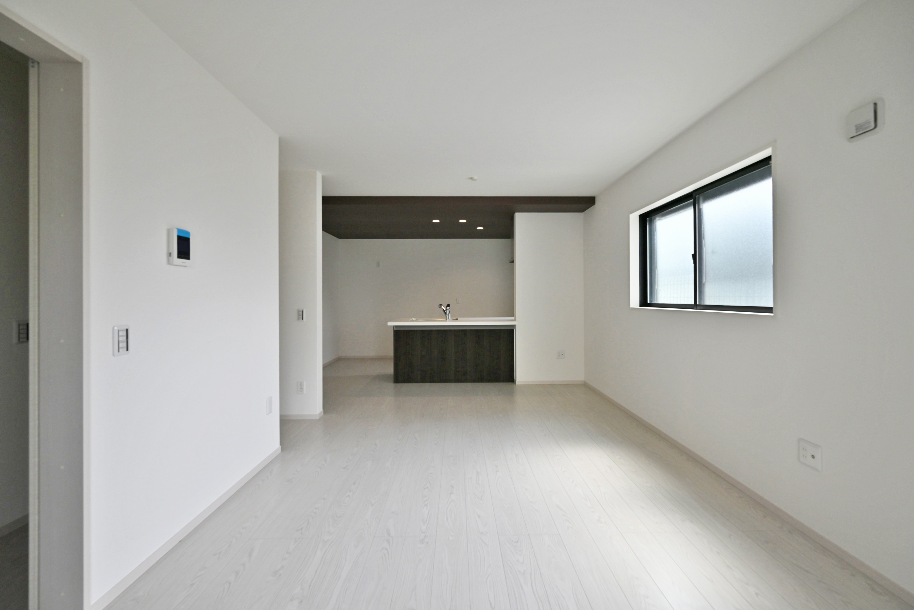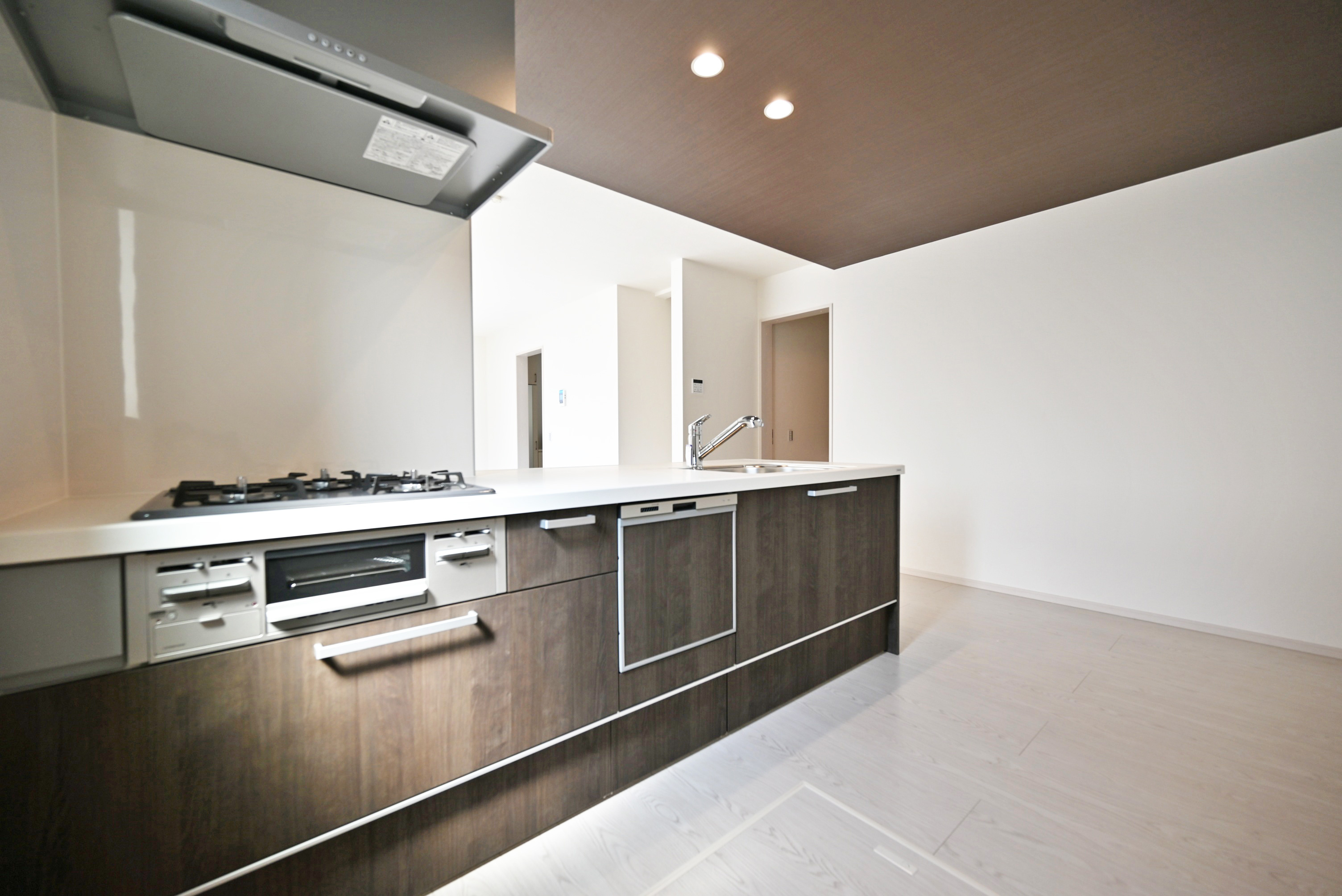 - LDKは16.9帖でダイニングテーブルやソファを設置しても十分な広さです。折り下げ天井やダウンライトなどデザイン性の高い設計に終始しています。