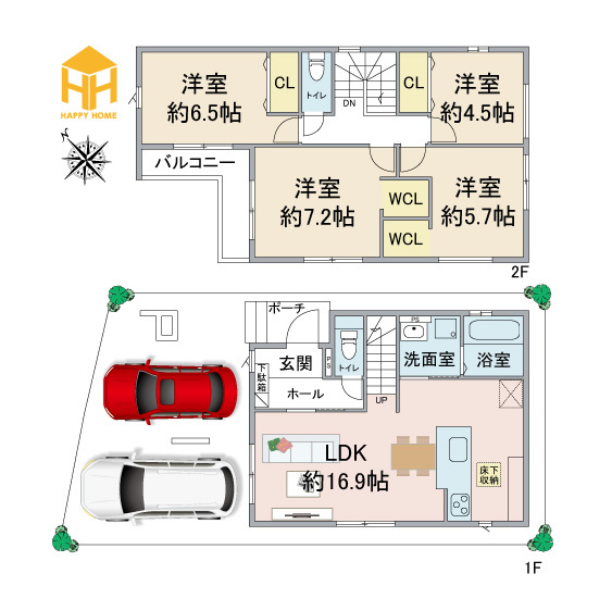 - 各居室収納有、WICL2箇所、床下収納など十分な収納スペースを確保しています。