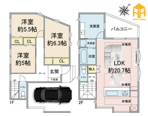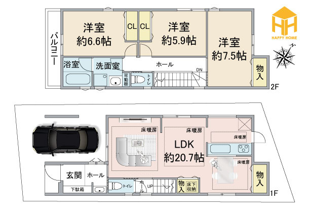 - 床暖房・深型食洗器・宅配ボックスなど標準装備